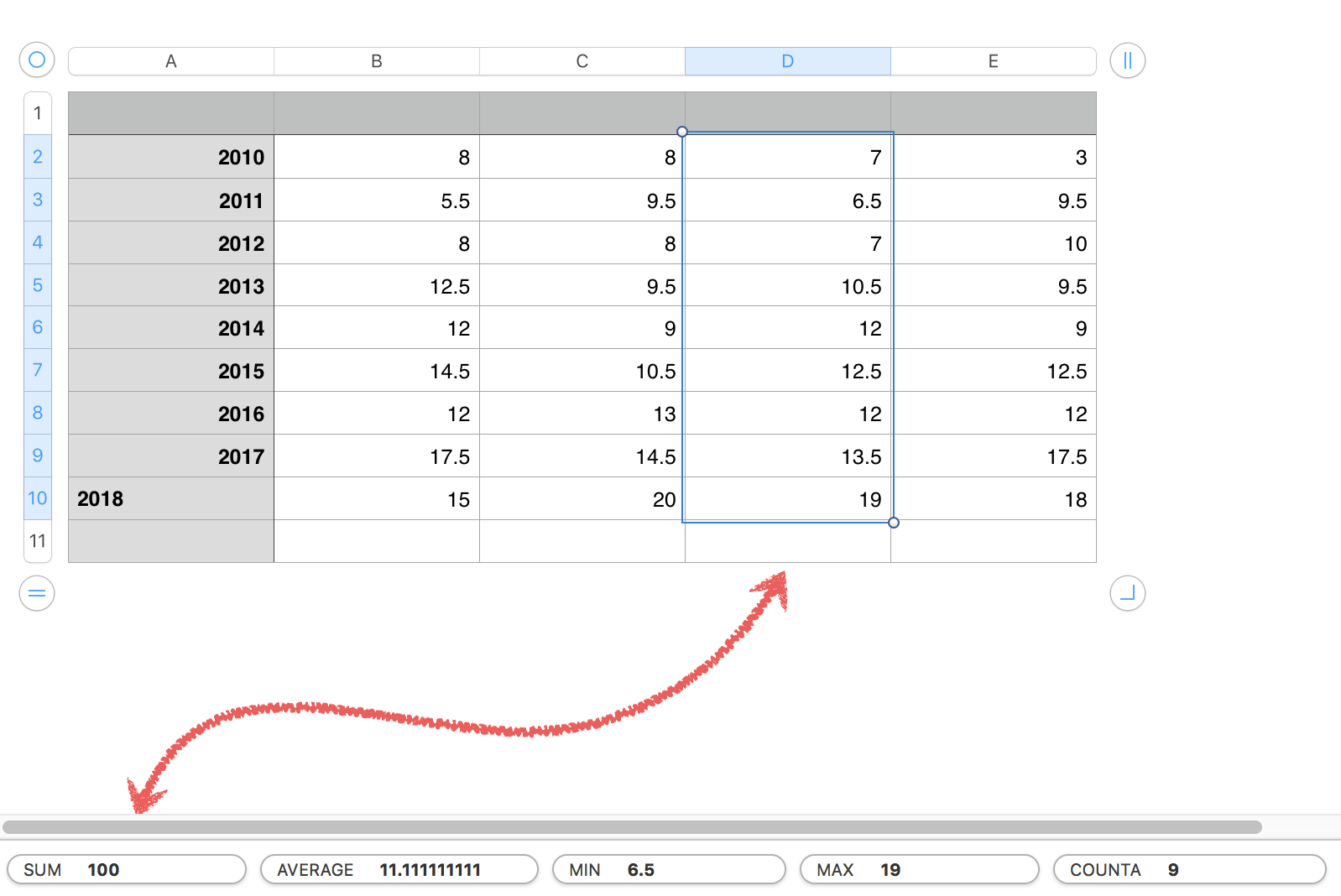 Row 10 is a Footer Row here. Or if someones already asked you can search for the best answer. Numbers automatically inserts the formula and chooses a result cell based on your selection.